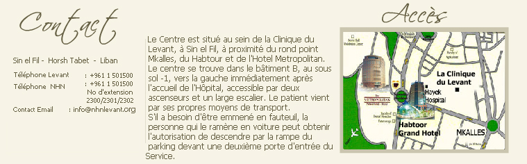 www.nhnlevant.org - info@nhnlevant.org Dr Elias Nicolas et Dr Oussama Abi Ghanem Chefs de département de la Clinique du Levant Rue Fouad Chehab, Sinn el Fil, Beyrouth, Liban